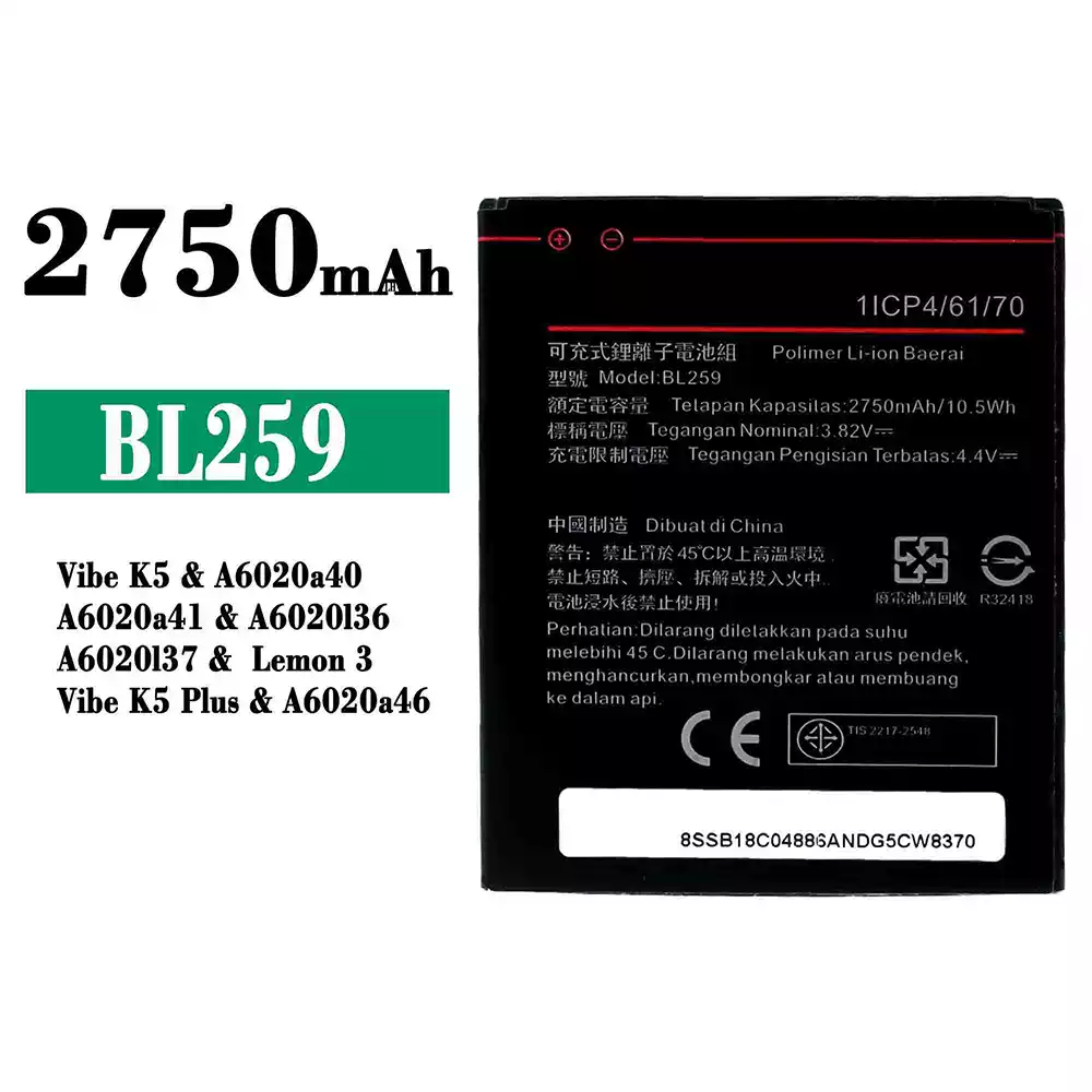 Bateria BL259 para Lenovo Vibe K5 / A6020a40 / A6020a41 / A6020136 / A6020137 / Lemon 3 / Vibe K5 Plus / A6020a46
