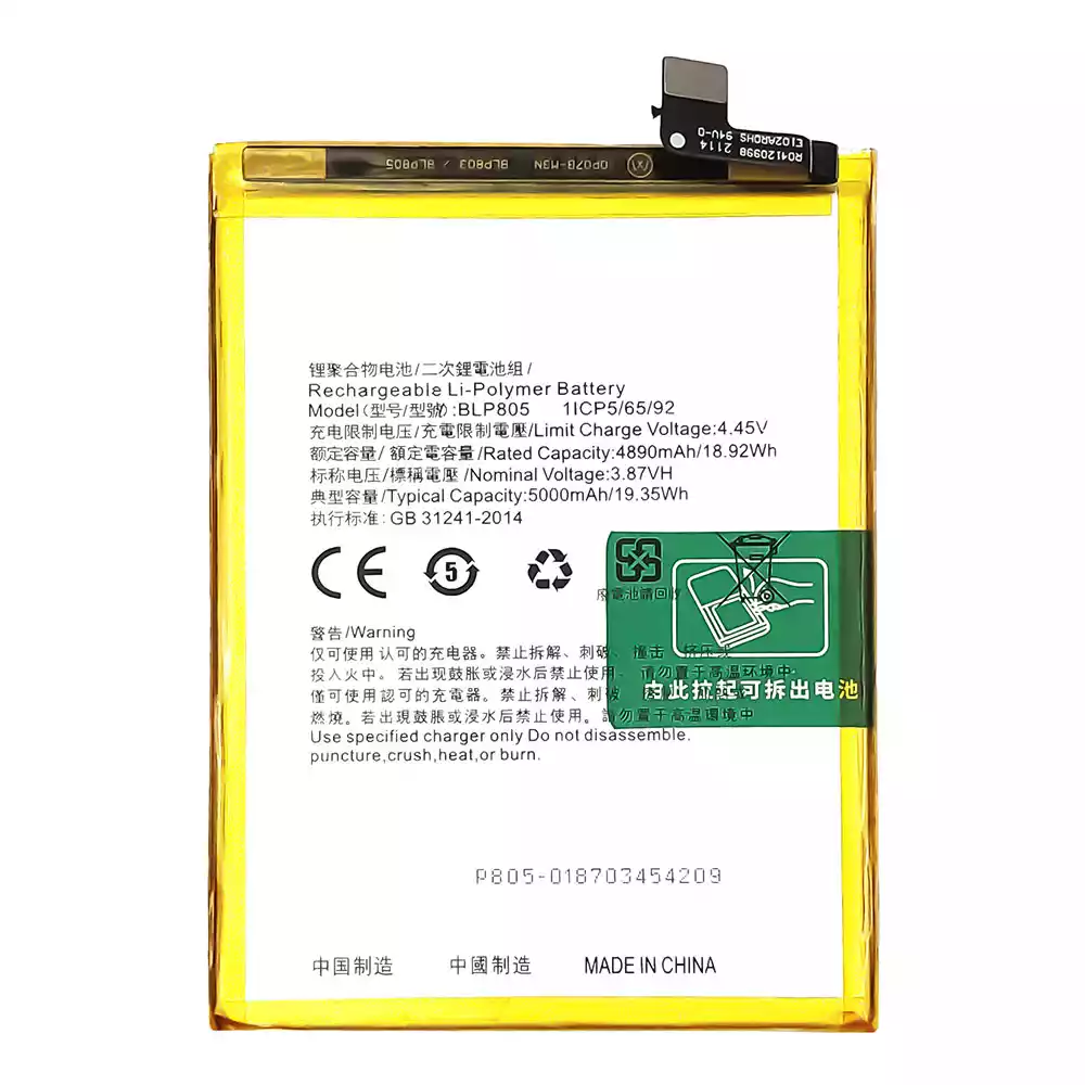 Bateria BLP805 para OPPO para A16 / A16S / A32(2021) / A53 2020 / A54 / A54 4G / A74 5G / A53S / A54S / A33 2020 / A93 5G / A55(2020)