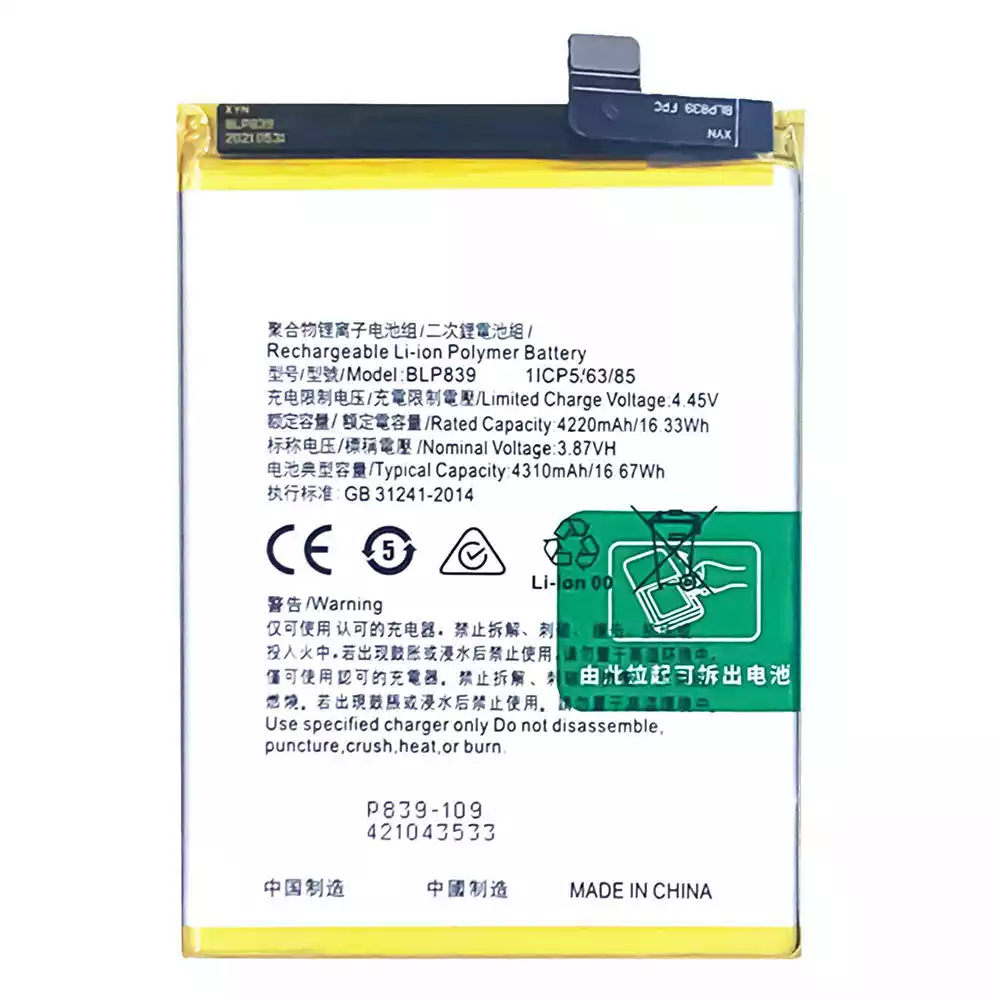 Bateria BLP839 para OPPO A95 5G / A94 5G / Reno 5Z 5G / Reno 6Z / PELM00