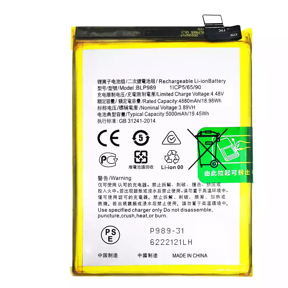 Bateria BLP989 para OPPO A98 5G /1+nord N30 5G /Nord CE 3 Lite /OnePlus Nord N30 5G /CPH2389 /OnePlus Nord CE 3Lite /CPH2467 /CPH2465