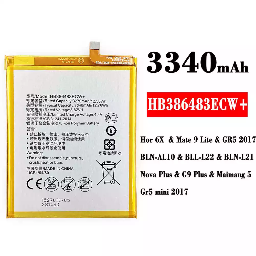 Bateria HB386483ECW+ para HUAWEI Honor 6X / Mate 9 Lite / GR5 2017 / BLN-AL10 / BLL-L22 / BLN-L21 / Nova Plus / G9 Plus / Maimang 5 /Gr5 mini 2017
