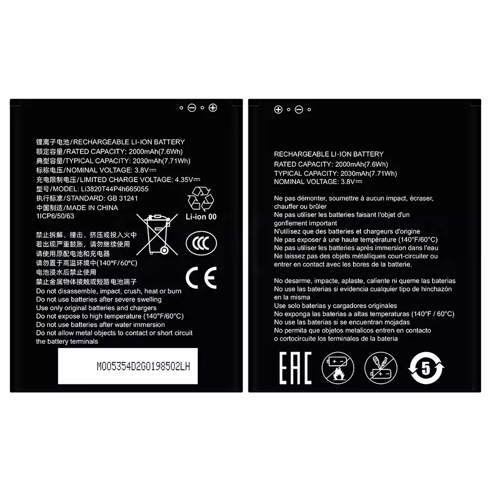 • Bateria Li3820T44P4h665055 para ZTE MF935
