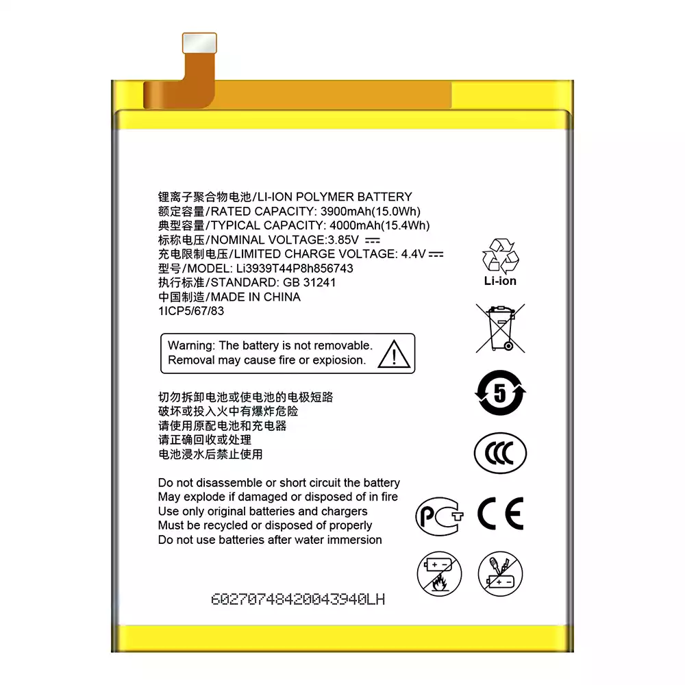 Bateria Li3939T44P8h856743 para ZTE Blade A6/A3 A0605/A0616
