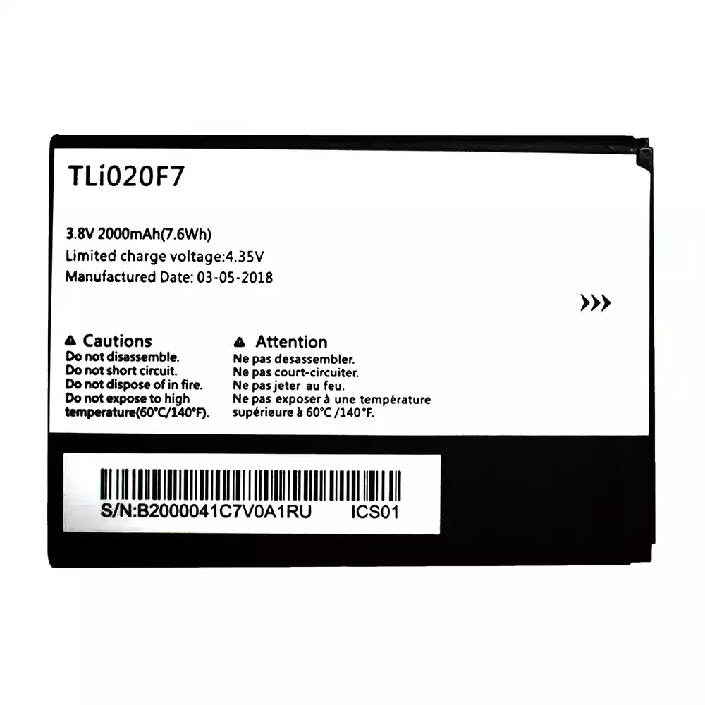 Bateria TLi020F7 para Alcatel PIXI 4 5045D/Pop 2/5042D/C7/7040/7040D/7041/7041D